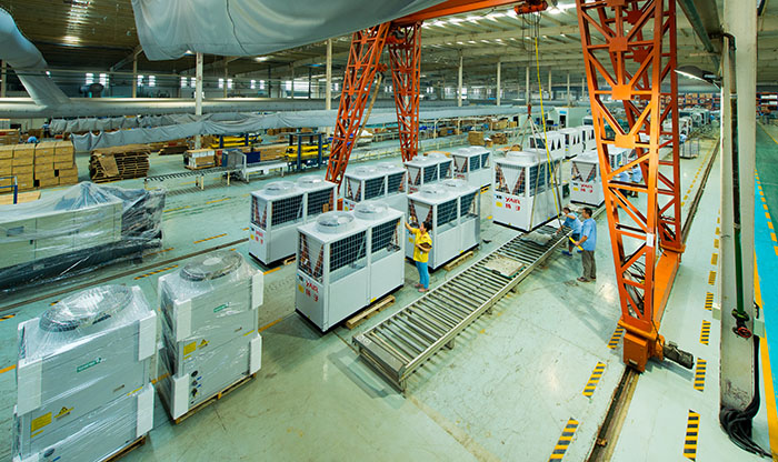 中央空调产品线特点就是一个字——“全”,但是,2004年的扬子中央空调,却不贪“全”而求“精”。扬子中央空调当时的优势产品就是模块机,产品线越“全”固然好,但是对目前的扬子中央空调来说,最重要的就是抓住几个重点类型的产品,做好做精。这种“求精”的基调,这种“差异化”竞争策略,使扬子中央空调的模块机产品走在正轨上,也促使扬子中央空调不断完善其优势产品。至2004年底,扬子中央空调已经研发出包括模块式风冷热泵冷(热)水机组、螺杆式水冷冷水机组、低静压风管机、高静压风管机、户式冷(热)水机组、嵌入式机组、单元式柜机、末端系列机组等10大系列产品;仅模块机产品一类,就有3个子系列产品,除了标准型模块机外,还有热回收型模块机系列。随着产品种类的丰富、产量的提升,2004年扬子空调占地400多亩的现代化生态工业园区正式投入使用,在新的厂房内,现代化的生产流水线,使扬子中央空调的模块机等产品的产能得到了更大的提升,为扬子中央空调在全国各地树立样板工程并享誉“模块”做好了准备。
